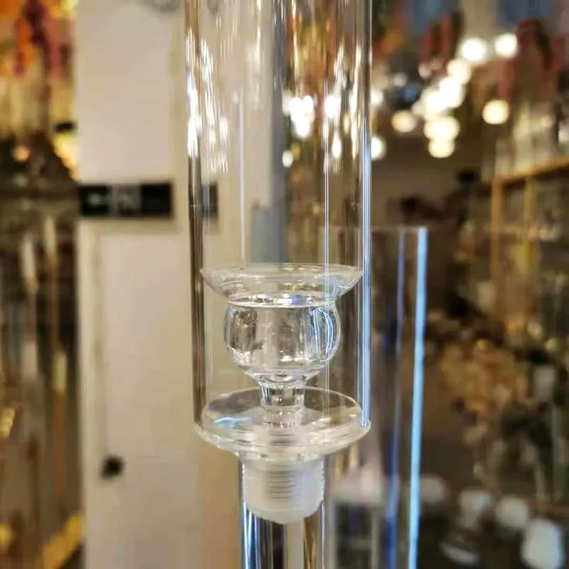 У подсвечников на 4, 5, 8 и 9 свечей общее основание и высота выше метра. Никому не мешают, так как прозрачные. А выглядят очень роскошно!