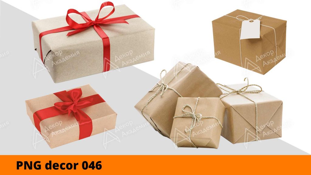 Подарки в крафт бумаге без фона. Скачать в PNG