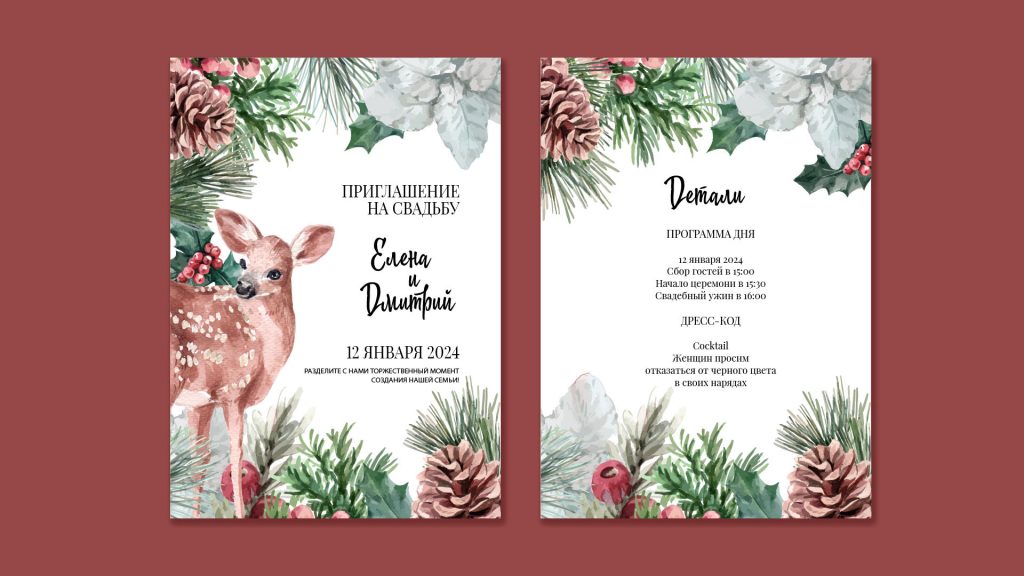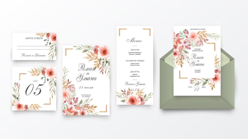 Скачать шаблон свадебных приглашений «Золотые ветки»