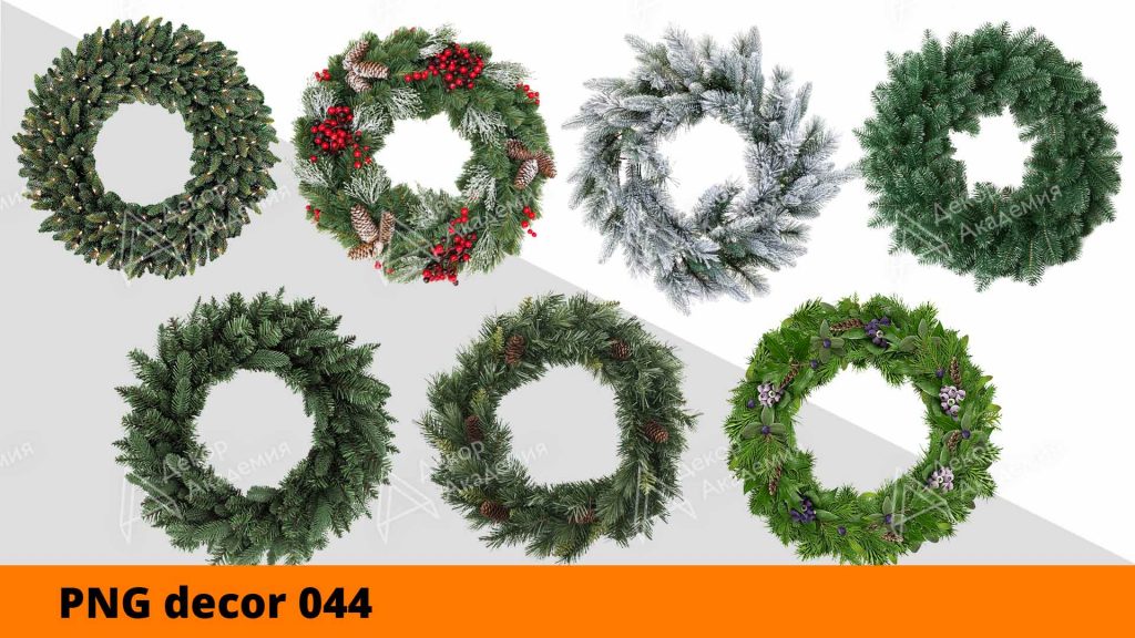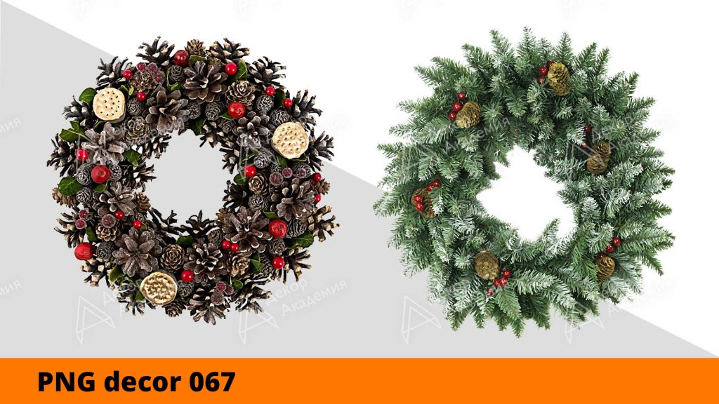 Новогодний еловый венок со свечой и без в формате PNG без фона Скачайте уже готовые модели декора и используйте…