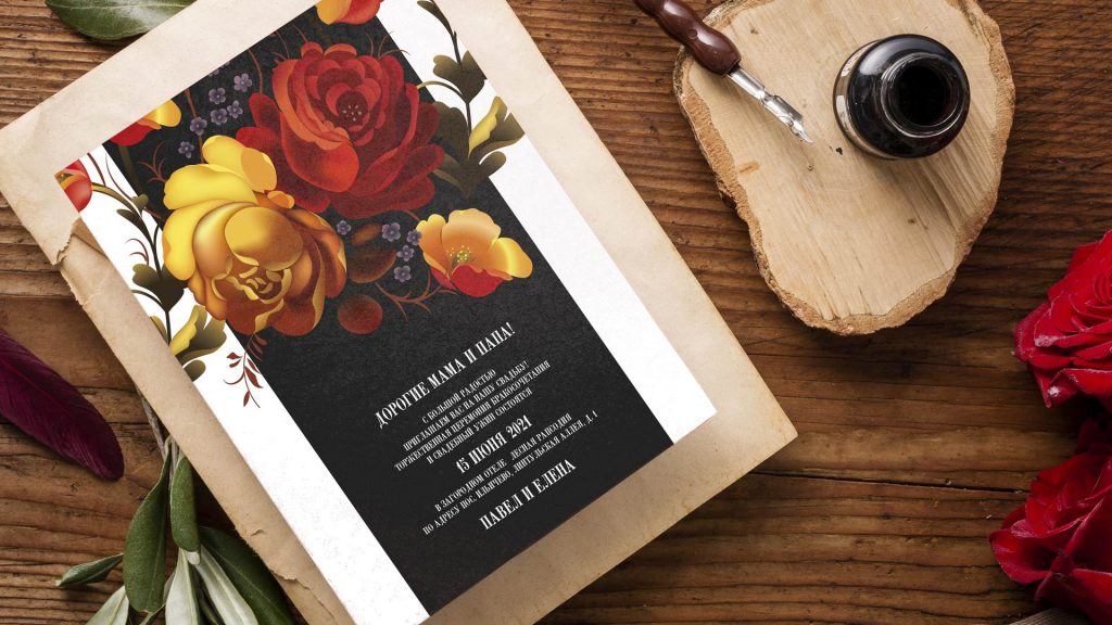 Скачать шаблоны: свадебные приглашения «Жостовский мотив»